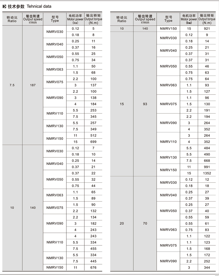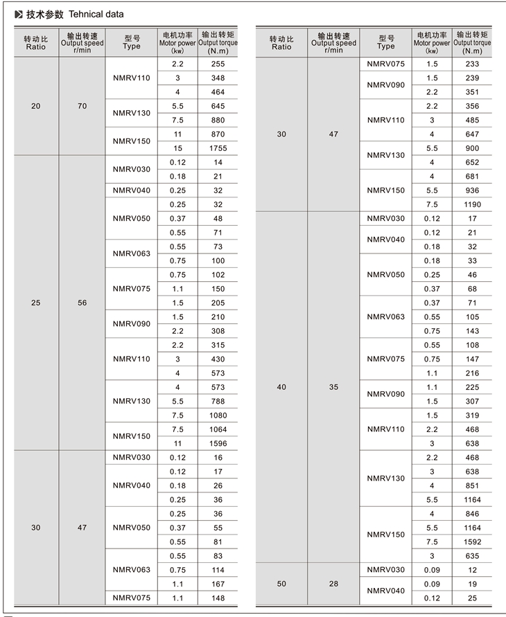 4、與RV、NMRV、NRV蝸輪蝸桿減速機配套的電機必須合適在低溫環境中工作;